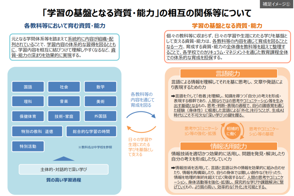 令和7年12月に開かれた中教審の特別部会において、次期学習指導要領の「学習の基盤となる資質・能力」について議論がされたようです。
